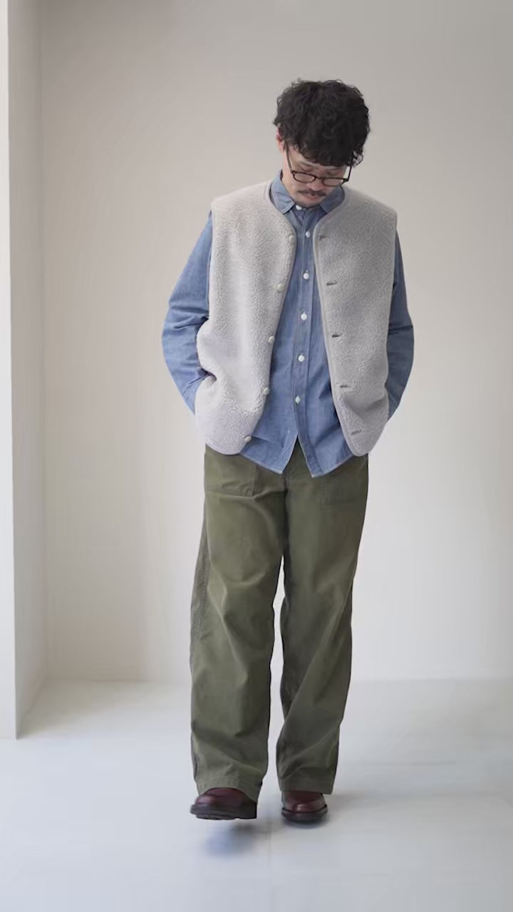 ●Staff (165cm / 52kg) Body type: Slim Wearing size: 38 Fits with a comfortable amount of room even over a sweatshirt. The length falls around halfway over the hips. |