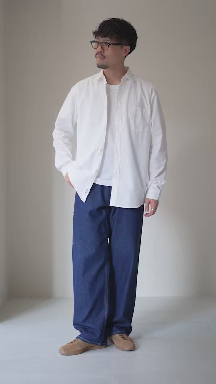 | ● Staff (165cm / 52kg) Build: Slim Wearing: Size M Wearing a relaxed fit, the beautiful sheen and drape stand out, giving an impression of sophistication, not just roominess. The length is slightly longer, but the clean hemline ensures it doesn’t look sloppy even when left untucked. |