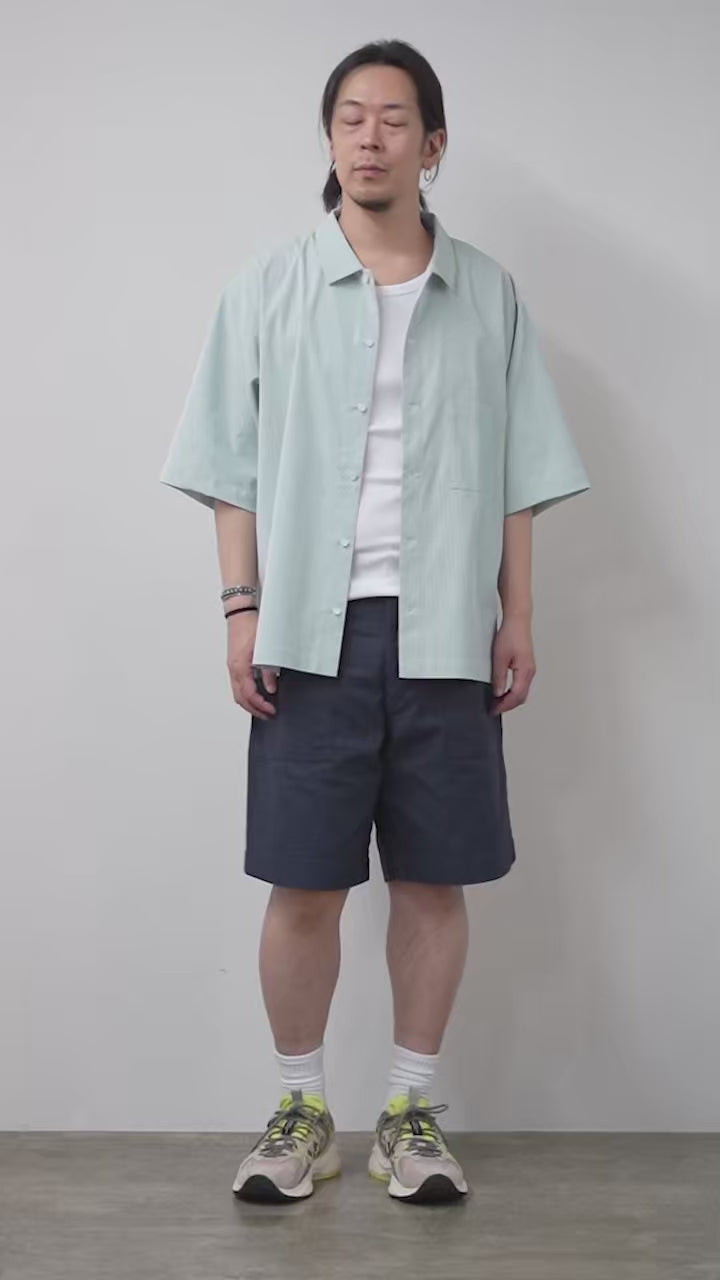 ●Personnel Taille / Poids : 165 cm / 64 kg Taille de port : 2 Type de corps : Mince (épaules étroites) Coupe : Détendue Longueur : Légèrement longue La taille 2 correspond à peu près à un S–M. La facilité générale crée une coupe naturellement décontractée avec des épaules légèrement descendues. Le corps plus large semble plus proche du M. La longueur couvre juste au-delà des hanches, ce qui le rend polyvalent avec des shorts et des pantalons longs. |