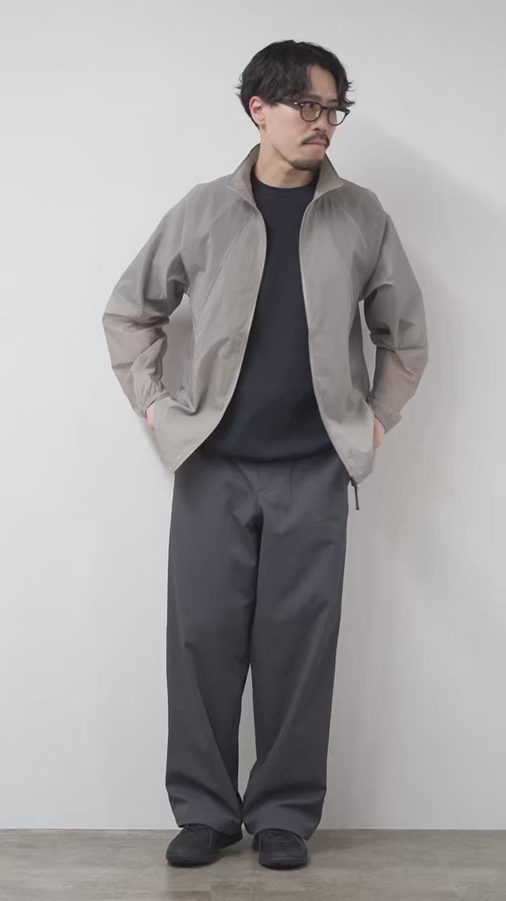 Une veste légère fabriquée à partir de « Sheer Nylon Washing », un nylon à armure toile finement tissé avec une texture ultra légère et translucide.