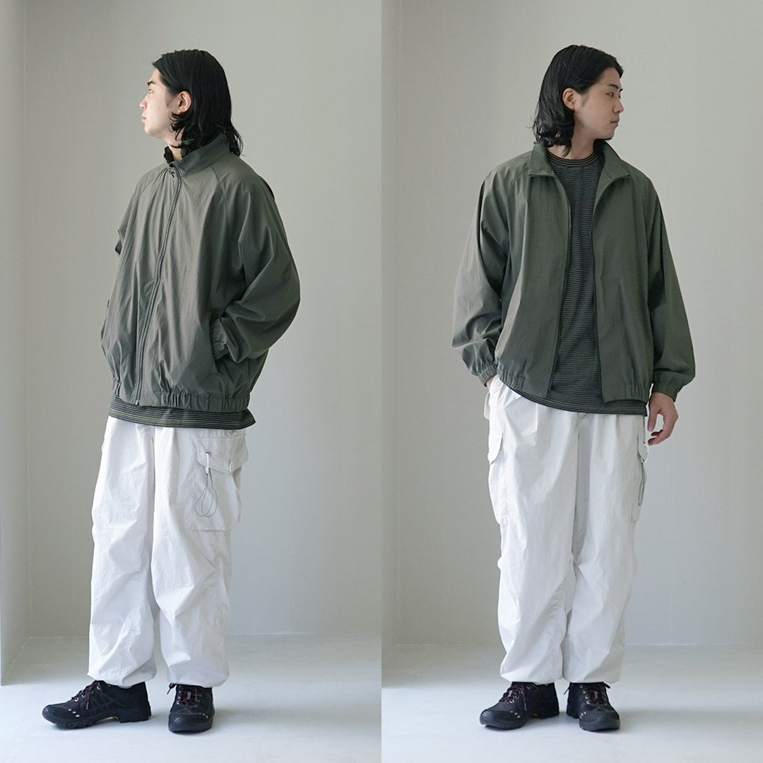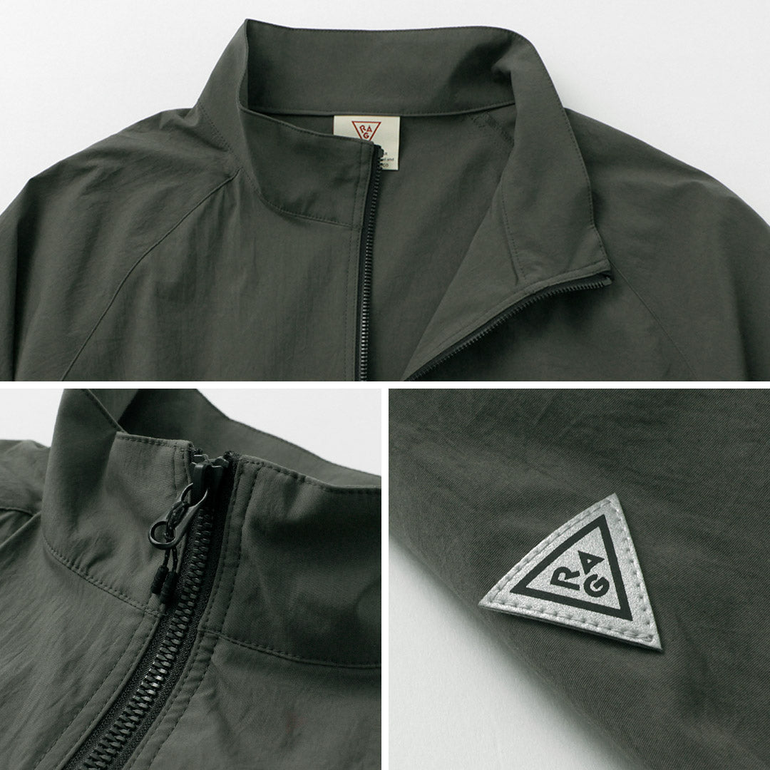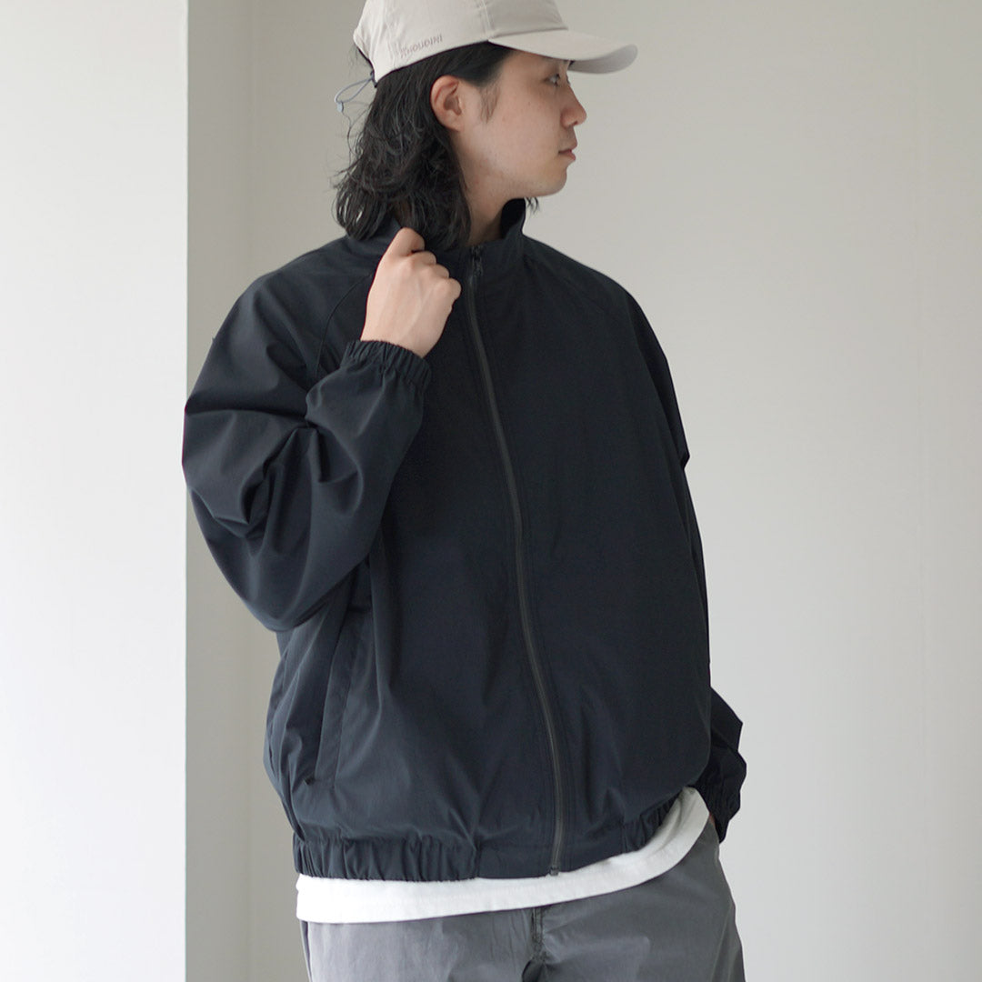 Design simple et facile à utiliser basé sur une veste de piste. Des poches zip sont fournies des deux côtés, et les poignets et l'ourlet sont finis avec une conception côtelée qui offre une étanchéité modérée.