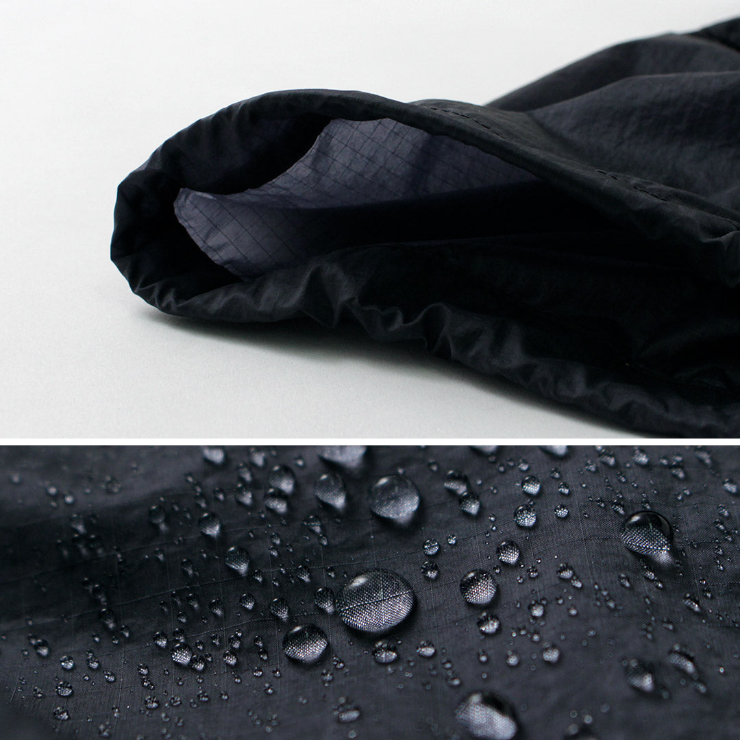 The fabric is made from lightweight ripstop nylon. Even if the fabric tears, the rip will not spread further, ensuring peace of mind. It can be folded up and easily stored in your bag, offering excellent portability. Additionally, it has water resistance, so it is safe to use in light rain.