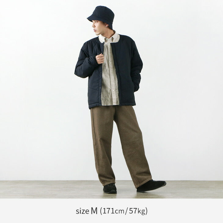 Ce type d'équipage sans col et de cols d'équipage est facile à combiner avec une variété de vêtements intérieurs et extérieurs. L'avant a des boutons instantanés sur les deux poches latérales et sur la poche de poitrine gauche.