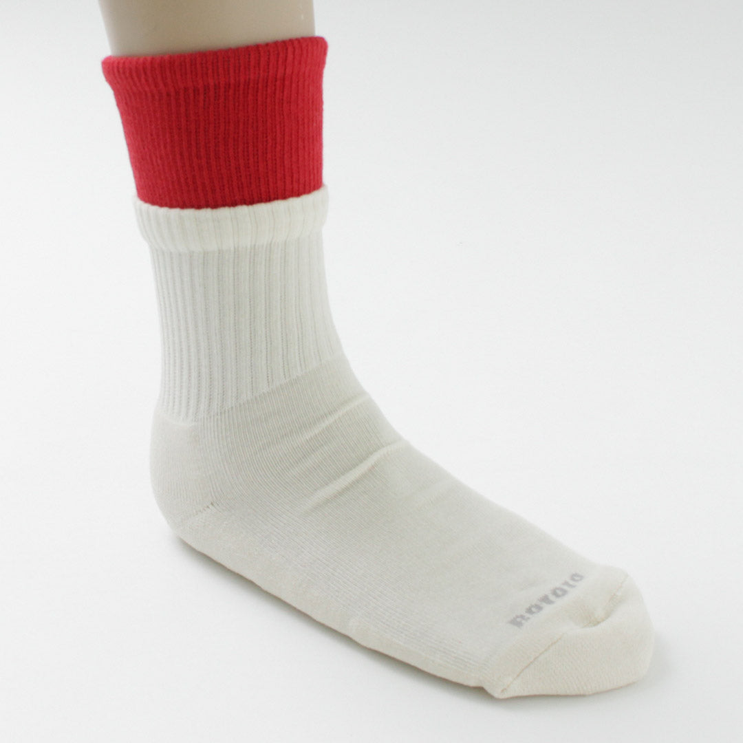 Le tissu est en coton biologique et est fini avec une chair confortable facile à utiliser toute l'année. Les semelles sont tricotées en pile pour améliorer l'amorti et l'absorption d'eau. De plus, les fils en nylon sont mélangés pour une finition difficile avec une durabilité améliorée.