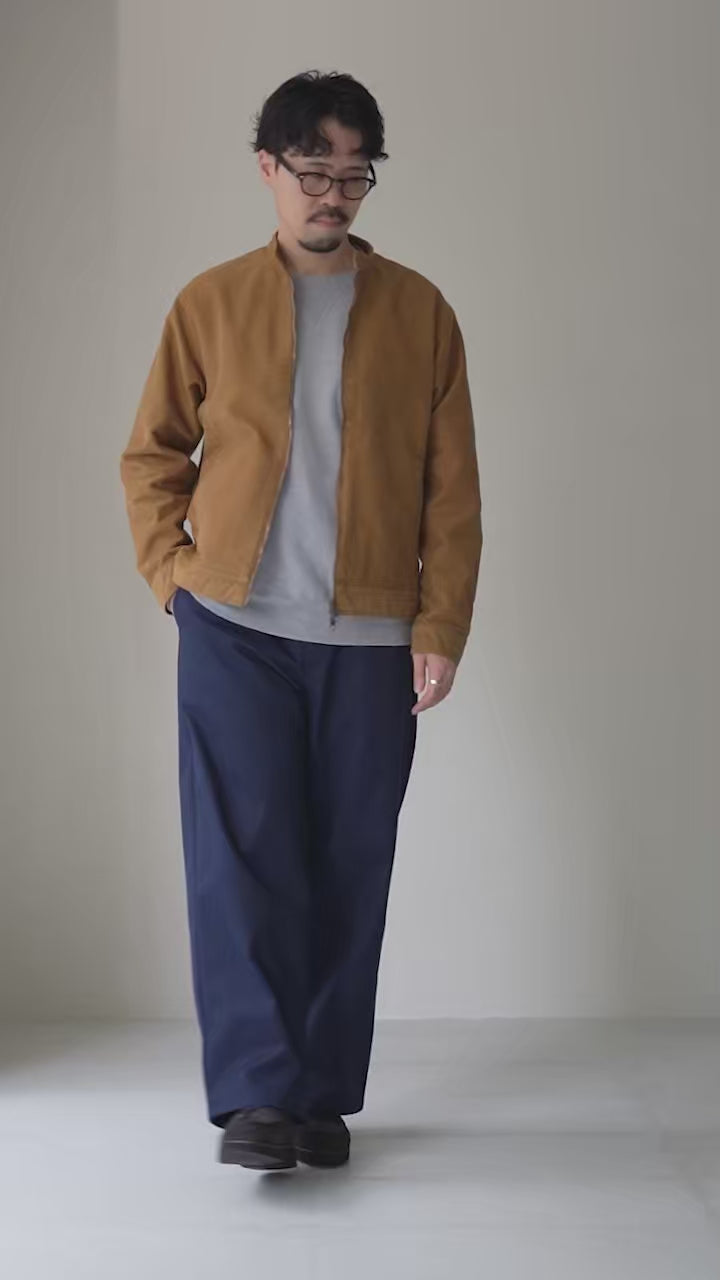 Malgré le réglage, il conserve une apparence compacte et équilibrée sans paraître lâche. L'adaptabilité naturelle de la moleskine permet à la veste de développer des rides gracieuses et une silhouette tridimensionnelle avec l'usure, renforçant ainsi son caractère au fil du temps.