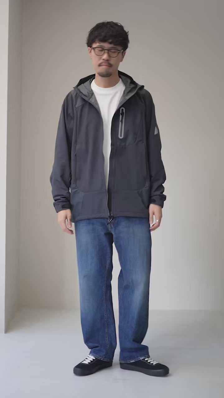 ● Staff (165cm / 52kg) Build: Slim Wearing: Size M I paired it with a thin inner layer, and it fit comfortably with a slight relaxed feel. The sleeve length just covers the back of the hand, which is great. By tightening the drawcord at the hem, it prevents wind from entering and keeps the silhouette neat. It’s the perfect size for a light spring or autumn outerwear piece. |