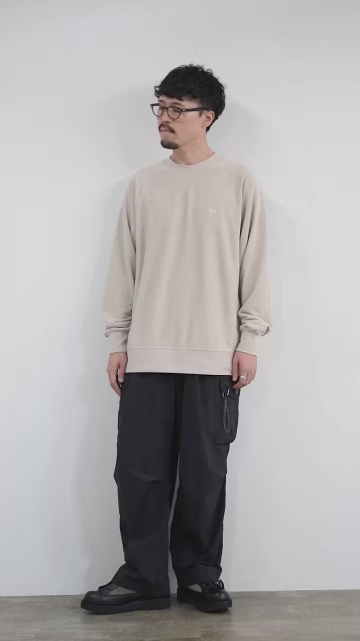 ● Staff (177cm / 67kg) Build: Average Wearing: Size L The length naturally covered my hips. The sleeves reached my wrists when extended, but with the ribbed cuffs, the sleeves stopped at the wrist, giving a rounded silhouette. |