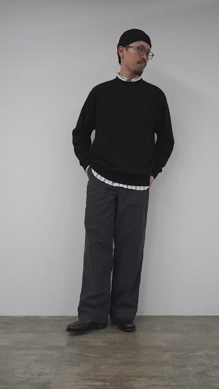 YONETOMI NEW BASIC presents a knit pullover made of 100% cashmere with a rigid finish.