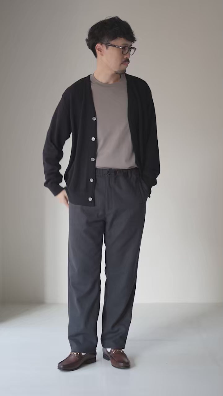Roomy through the hips and thighs with a gentle taper toward the hem. A versatile silhouette that pairs equally well with chunky sneakers or leather shoes. Combining the comfort of easy pants with a polished shape, it brings a mature balance of relaxation and refinement.