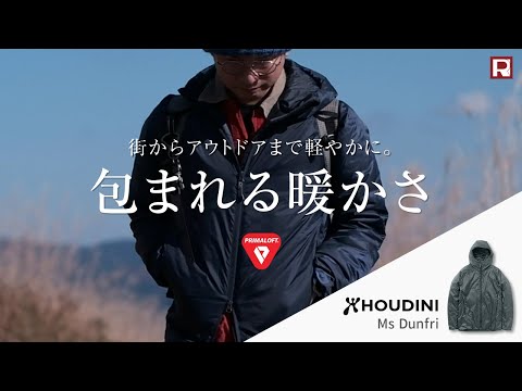 The "Ms Dunfri" is a standard item of HOUDINI. It is a highly functional outerwear that uses PRIMALOFT Gold Insulation as its fabric, which means "down-free." This item is made mainly from recycled materials without using any down or feathers.
