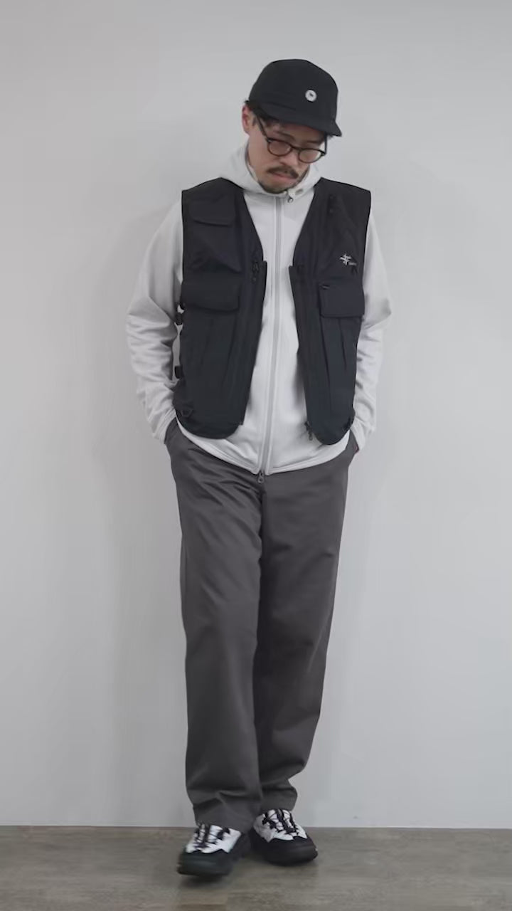 The lightweight body keeps you cool in spring and summer, and has an adjustable belt for layering over outerwear in fall and winter. The large pocket can hold a 70–200mm F2.8 class telephoto lens, making this a dependable piece of clothing for all seasons.