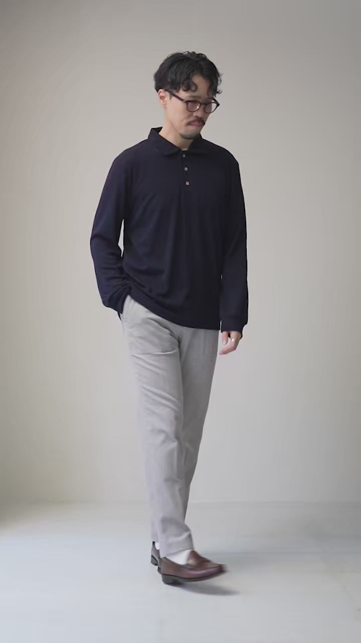 As an inner layer under a jacket, this dress-wool knit polo elevates your autumn and winter outfits with quiet sophistication.