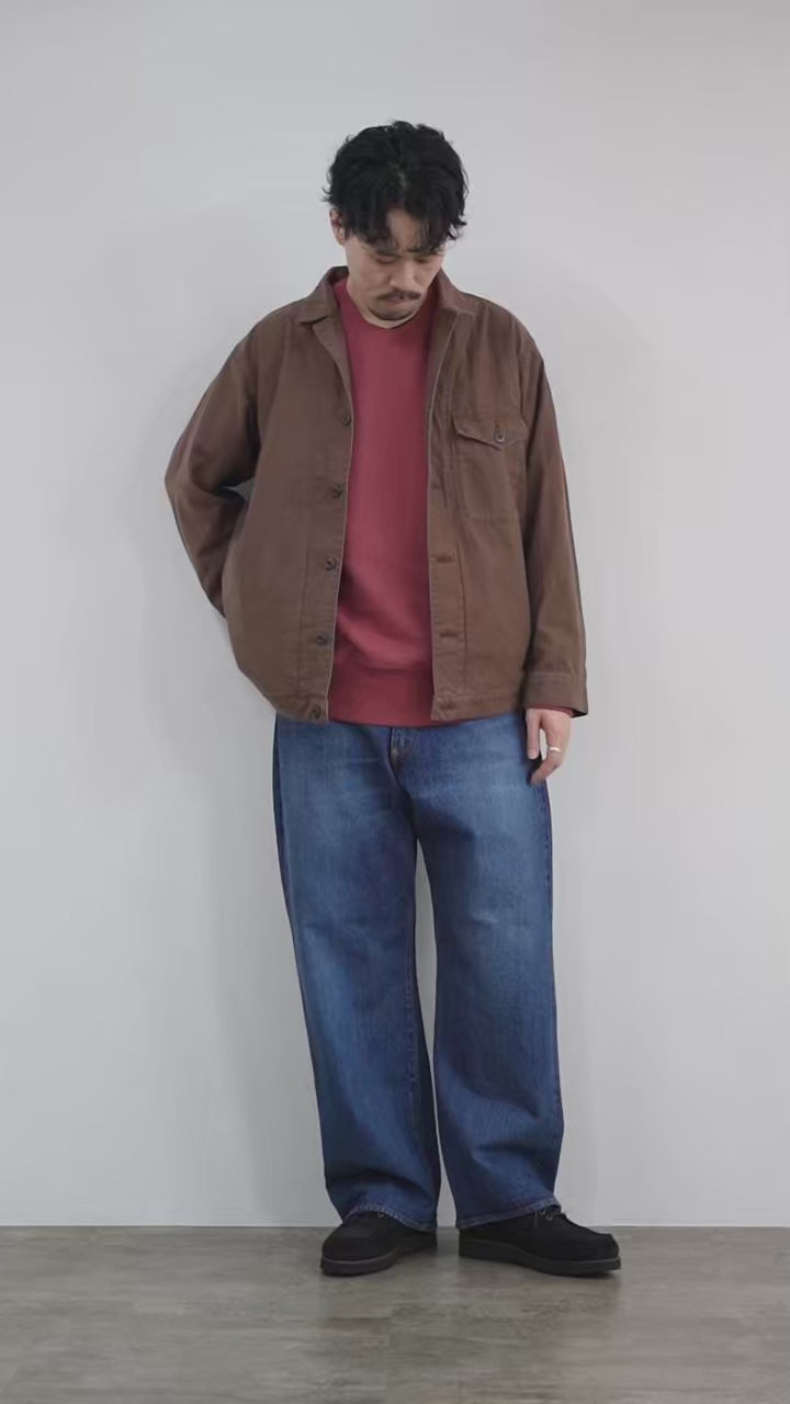 ●工作人员(177cm / 67kg) 体型:常规 穿着尺码: 32 与模型上所示的配合相同。臀部和大腿空间宽敞,全长刚好触及脚后跟,令人安心。宽大的廓形营造出自然、轻松的外观,为任何服装增添轻松自在的感觉。 |