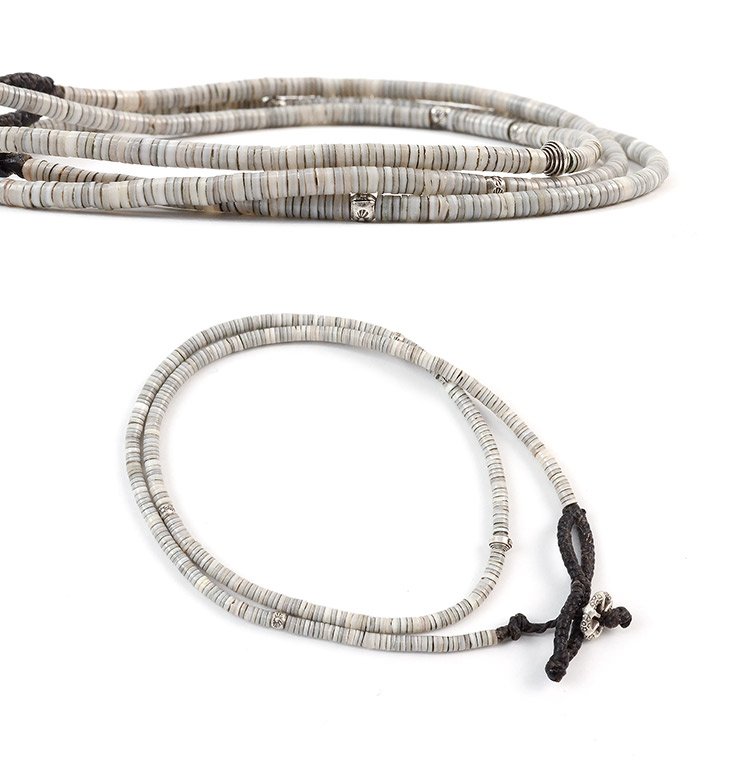 Materials | 贝壳珠,蜡线,凯伦银 |