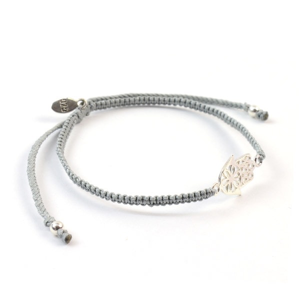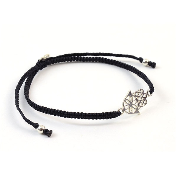 Hamsa Hand是世界上最受欢迎的护身符,以保护和好运。手镯由925银制成并镀上。手镯由925银制成,并镀板以匹配绳索的颜色。