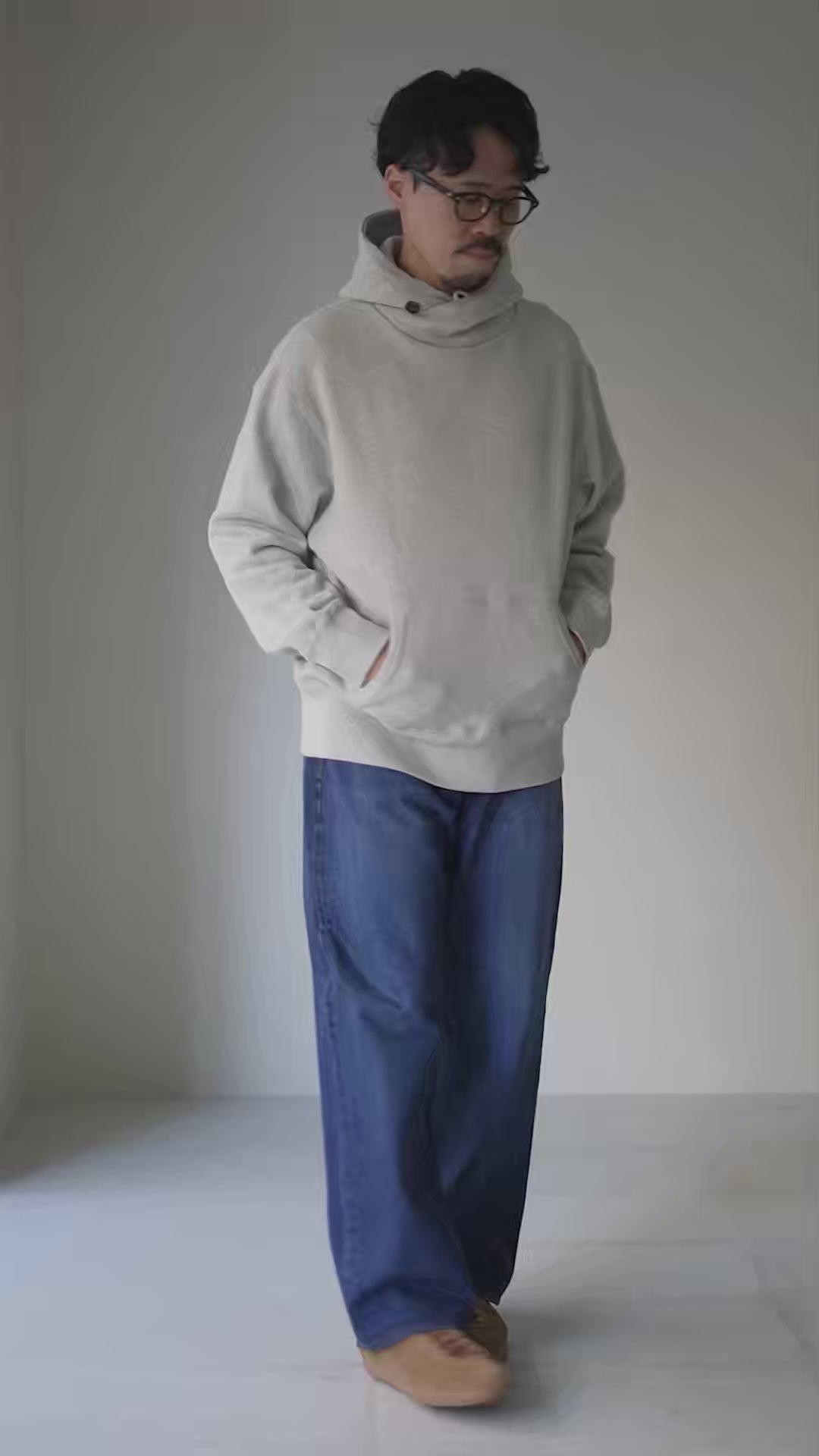 ●工作人员(165cm/52kg) 身材:苗条 穿着尺码:S 宽松版型,肩部空间舒适。长度大约覆盖臀部的一半,适合日常穿着。厚实、有结构的风帽增添了良好的触感,并能很好地保持形状。 |