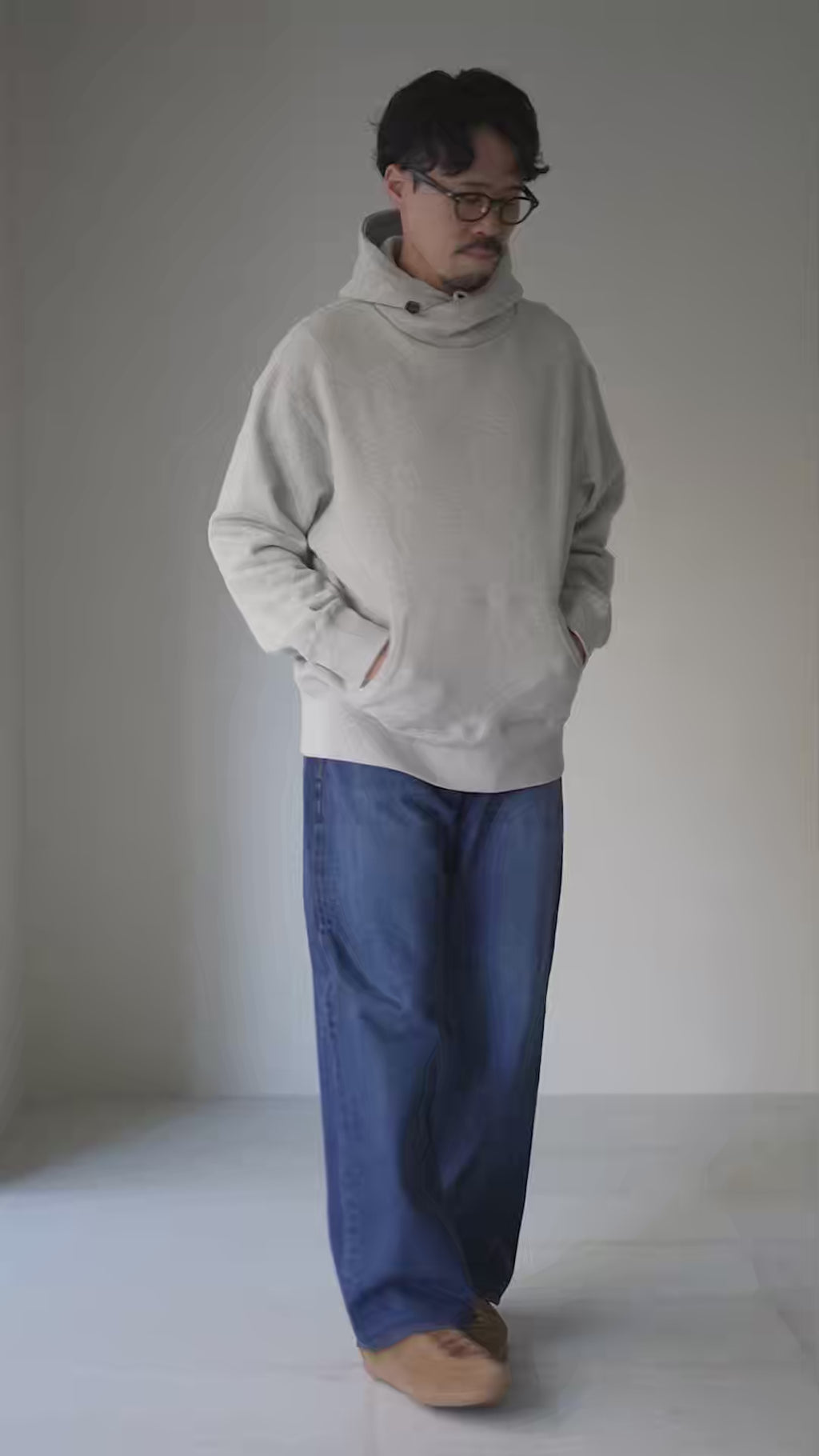 ●工作人员(177cm / 67kg) 身材:一般 穿着尺码: L 与照片中的模特相似。肩膀周围有足够的空间,给人一种轻松的感觉。长度完全覆盖臀部,带纽扣的兜帽可让您改变造型,即使单独穿着也很时尚。 |