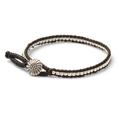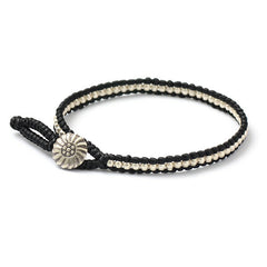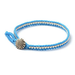 周围圆形的银色珠子。银珠是银色和绳索的完美平衡。脚链是用银色珠子和粘蛋白制成的。蜡绳和卡伦银的哑光光泽的结合是崎and和优雅的完美平衡。