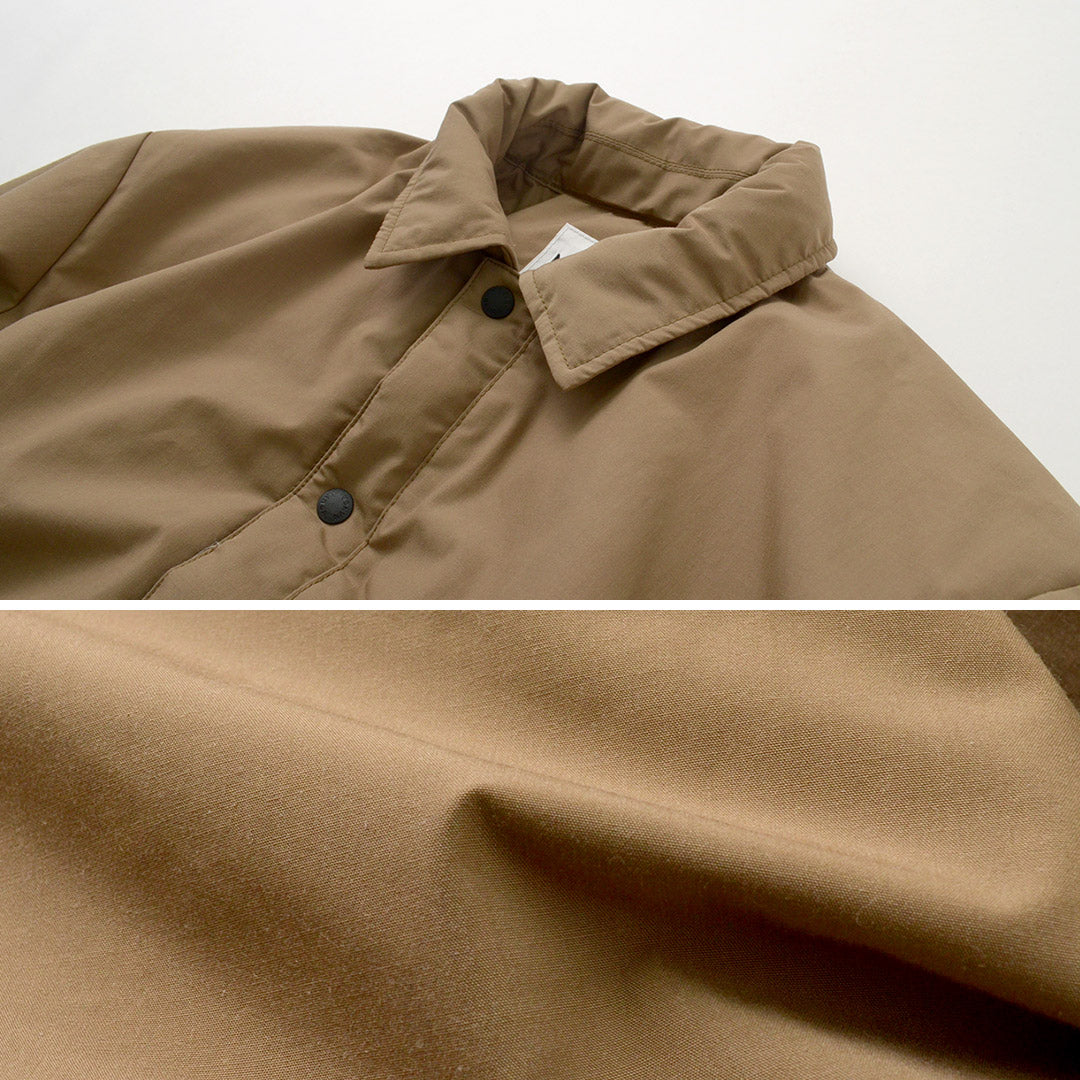 衣领和下摆项圈和下摆结合了衬衫的细节,使外观优雅。两侧都带有快照的口袋足够大,可以携带一个袋子来短途旅行。肋骨袖带可避免防风。