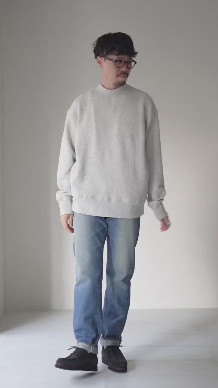 ● Staff (165cm / 52kg) Build: Slim Wearing: Size S A relaxed overall fit. Compared to a classic crewneck, it adds more styling versatility. The sleeves cover the backs of the hands, and the length reaches around the hips. |