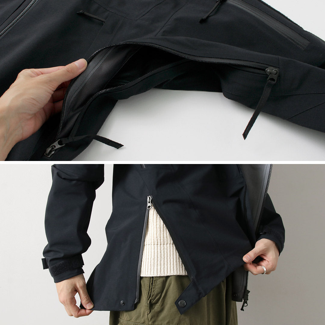 The jacket features a clean silhouette with just enough room for layering. Attaching the included expanders creates a wider fit for layering over bulky gear, while removing them offers a streamlined appearance for everyday wear.
