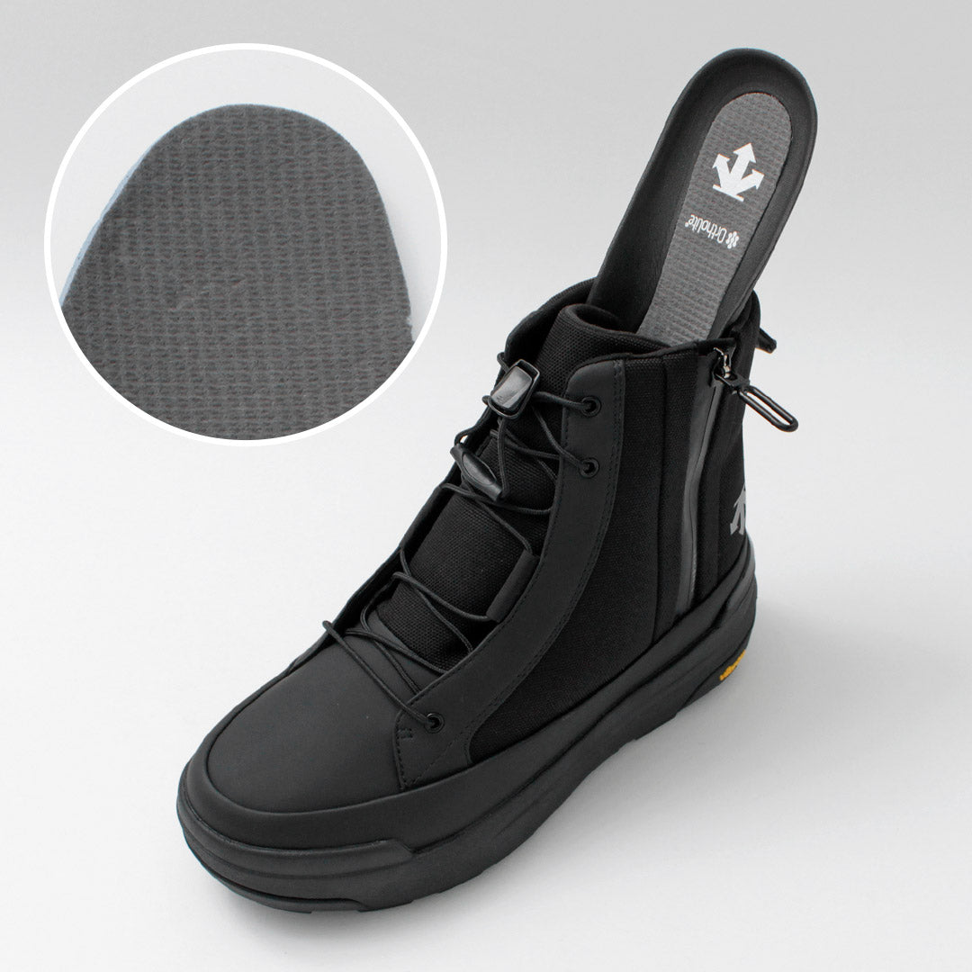 In addition to a zipper structure, the shoes are equipped with DESCENTE's original lace system for improved ease of wear. A pull tab on the heel further enhances the ease of putting on and taking off.