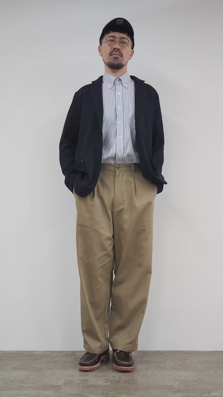 RE MADE IN TOKYO JAPAN / 棉质硬斜纹布折叠阔腿裤