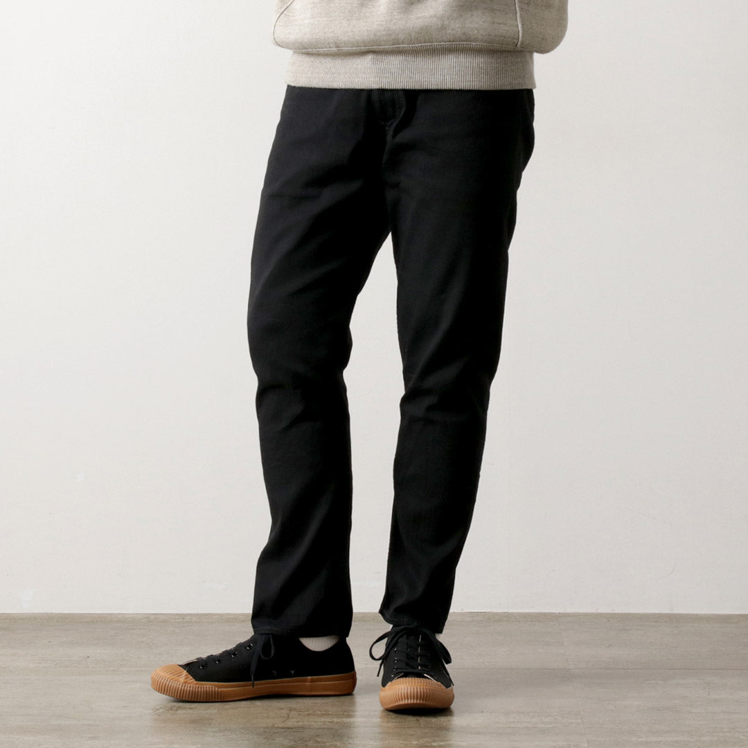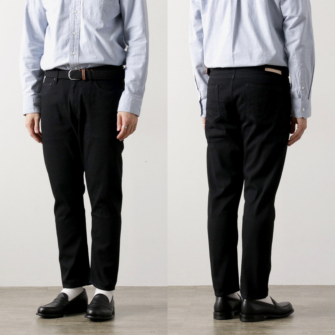 Crafted from deep, rich black denim using black threads for both warp and weft, this style avoids distressed treatments to maintain a clean, polished look. This results in a balance of casualness with an air of luxury and formality.