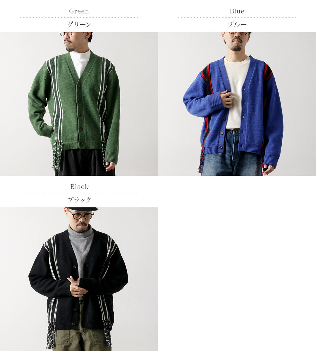 The cable knitting from shoulder to hem creates a classic look with seasonal appeal, while the fringe at the hem adds the brand’s unique touch to this simple knit cardigan.