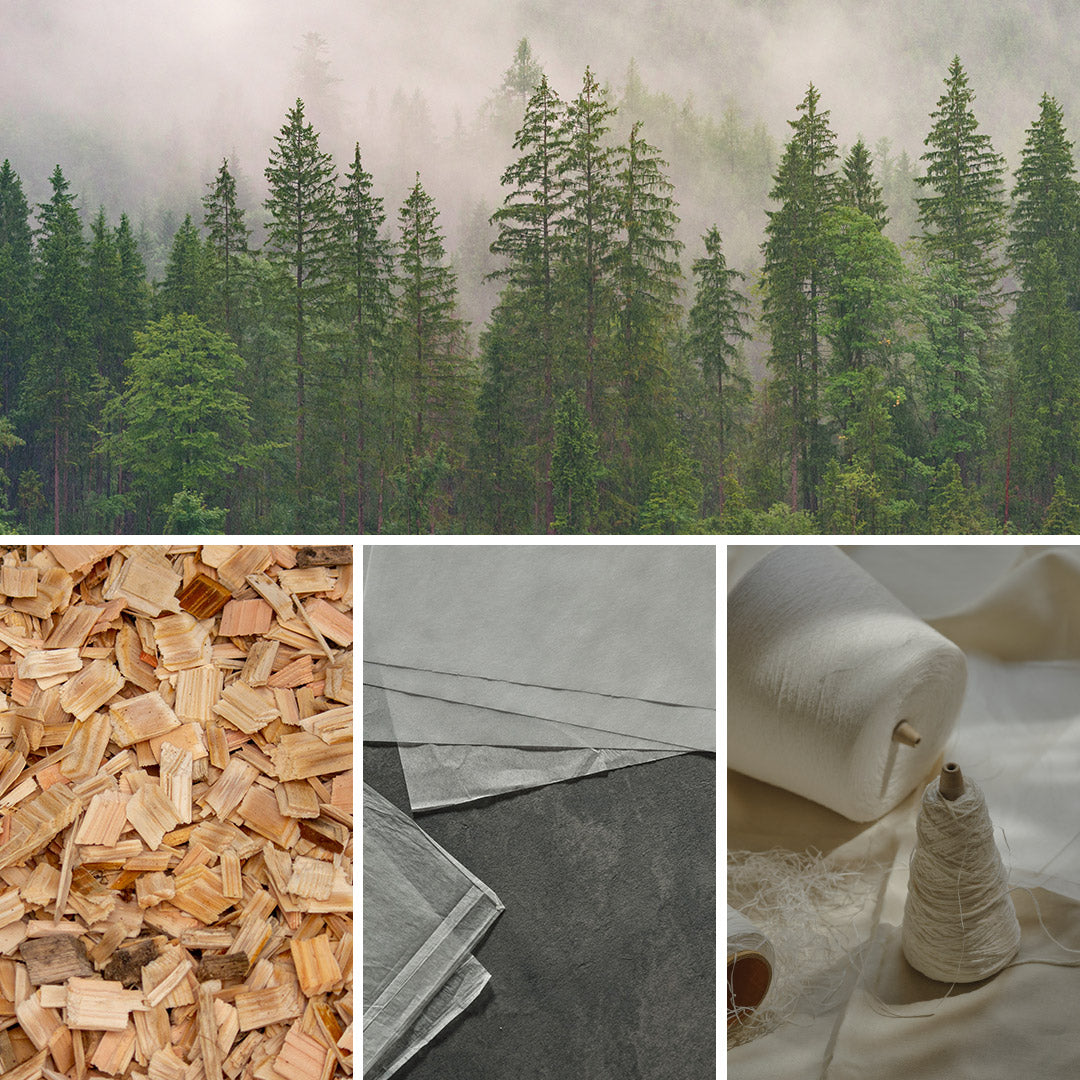 世界知名的多功能材料“ washifabric”源于环保意识的生产和加工。成熟的树木的二氧化碳吸收率降低,被处理成建筑材料。此过程的剩余部分成为Washifabric的原材料。