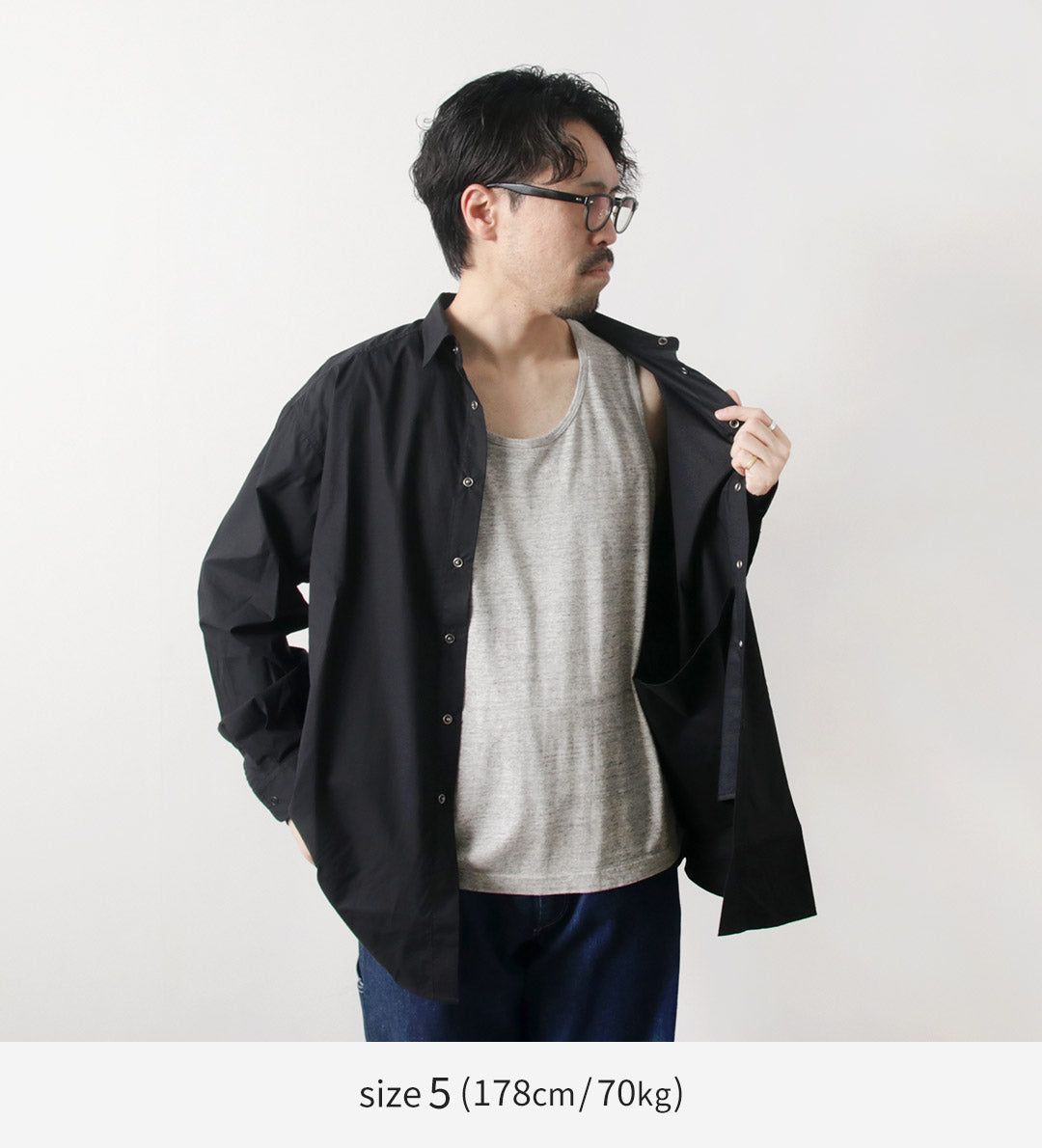 ●Staff (177cm/67kg) Body type: Average Wearing size: 5 Fit is similar to the model in the photo. The body has a modest amount of ease, and the length slightly covers the hips. The fabric is light and smooth, offering a stress-free wearing experience. |