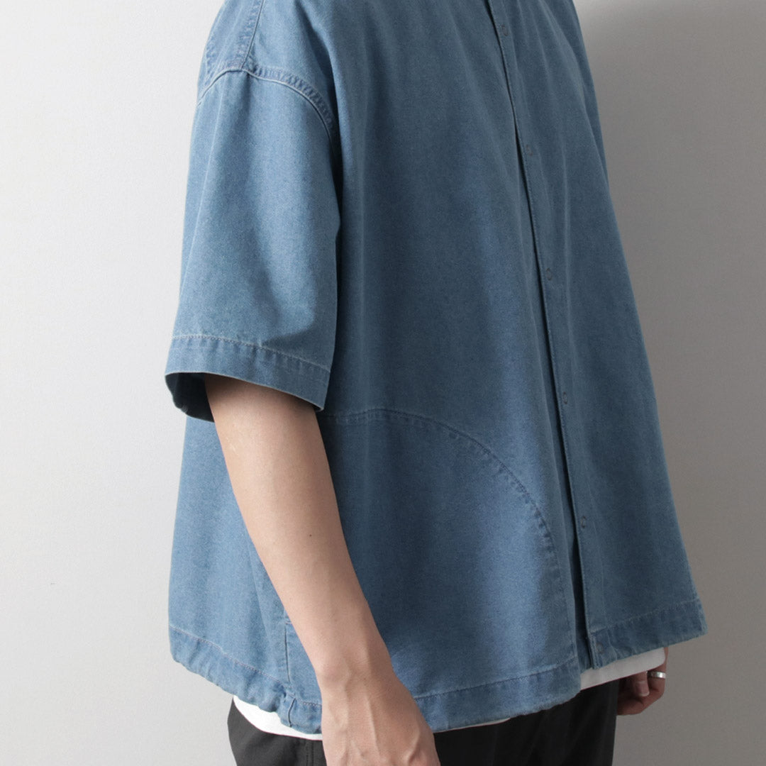 Introducing a wide square balloon denim shirt from KELEN, featuring a drawcord to adjust the silhouette.