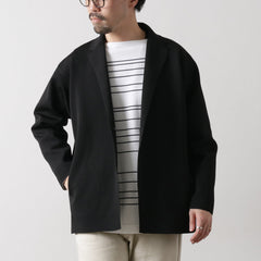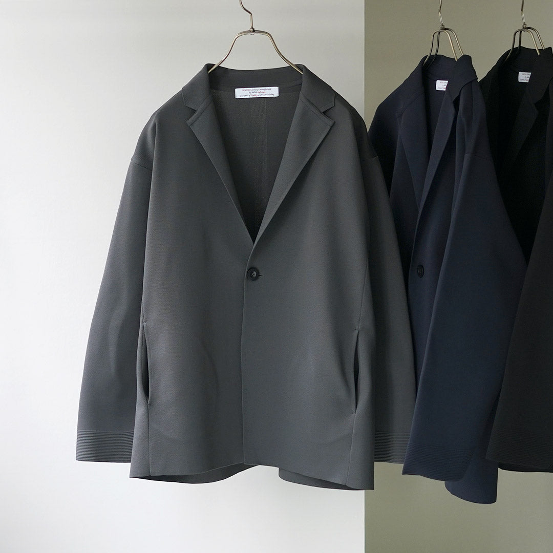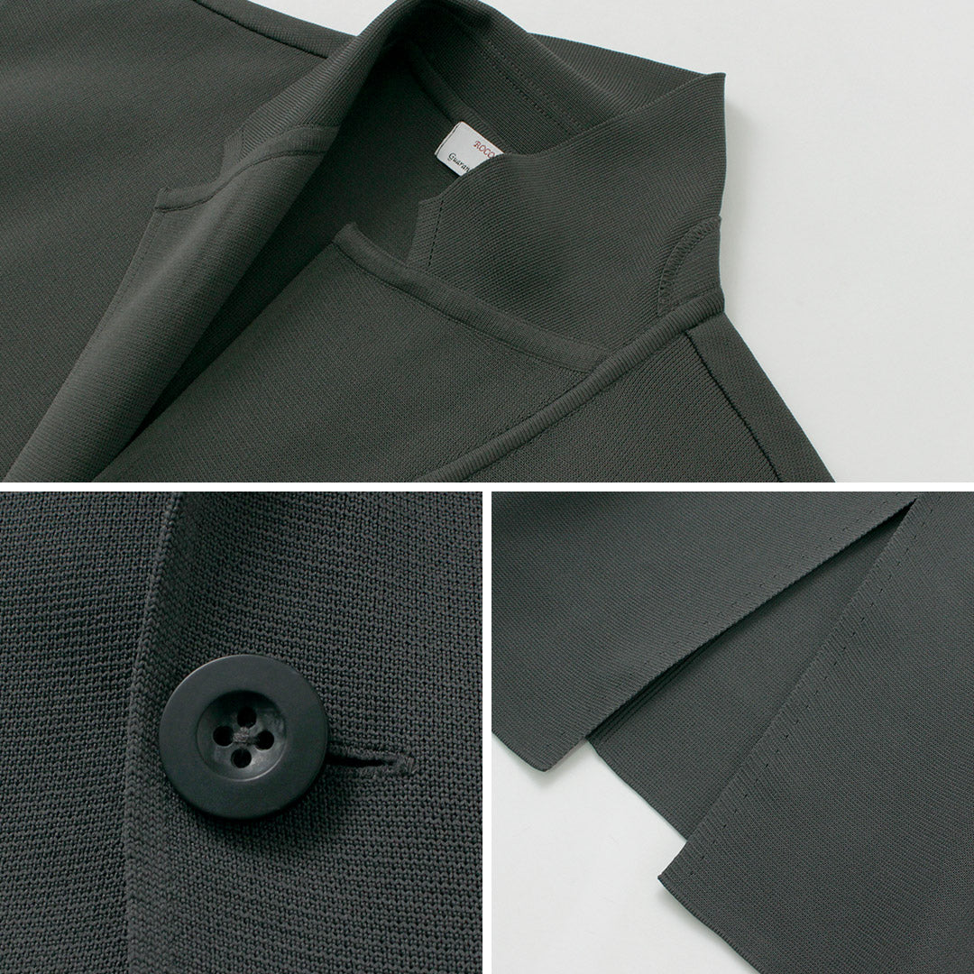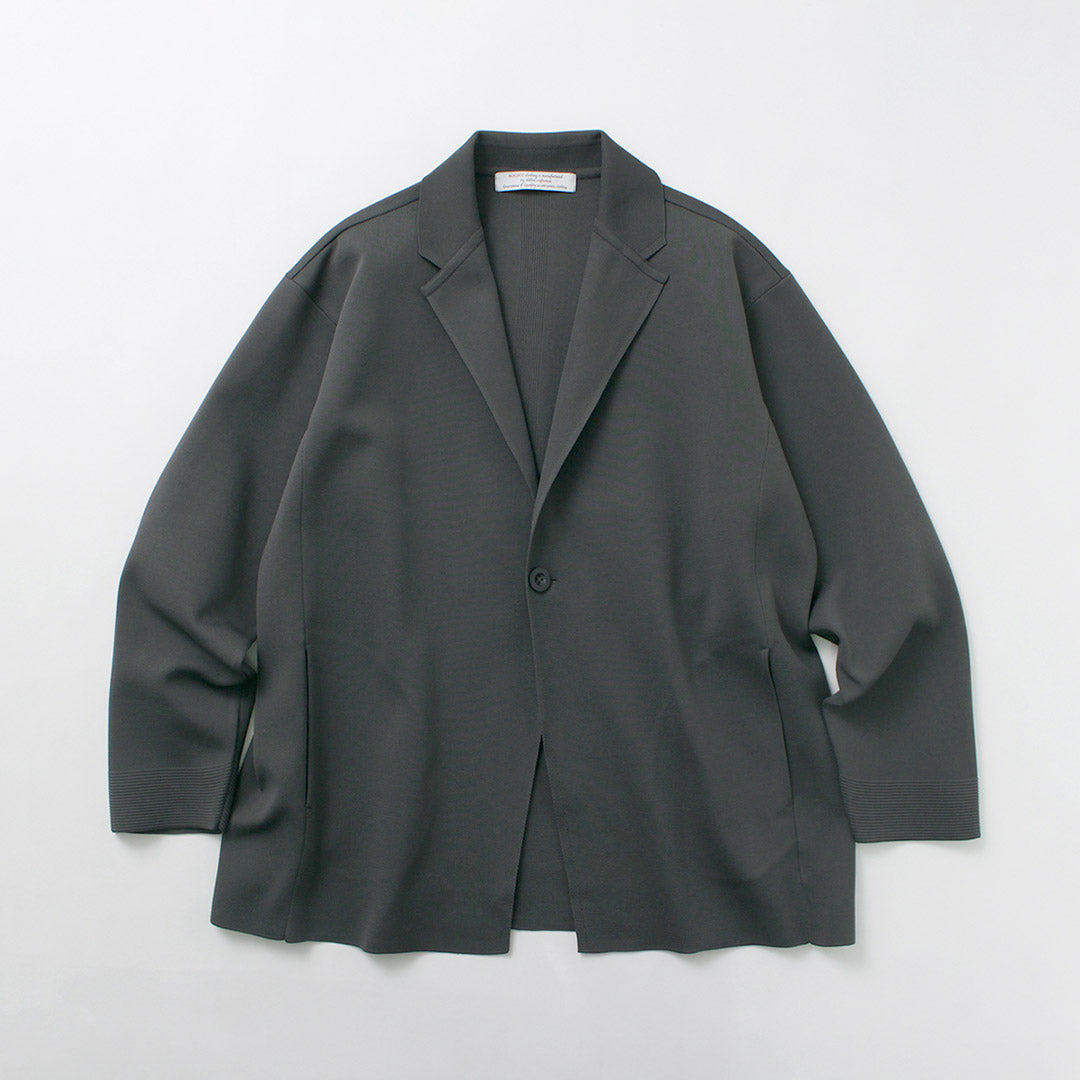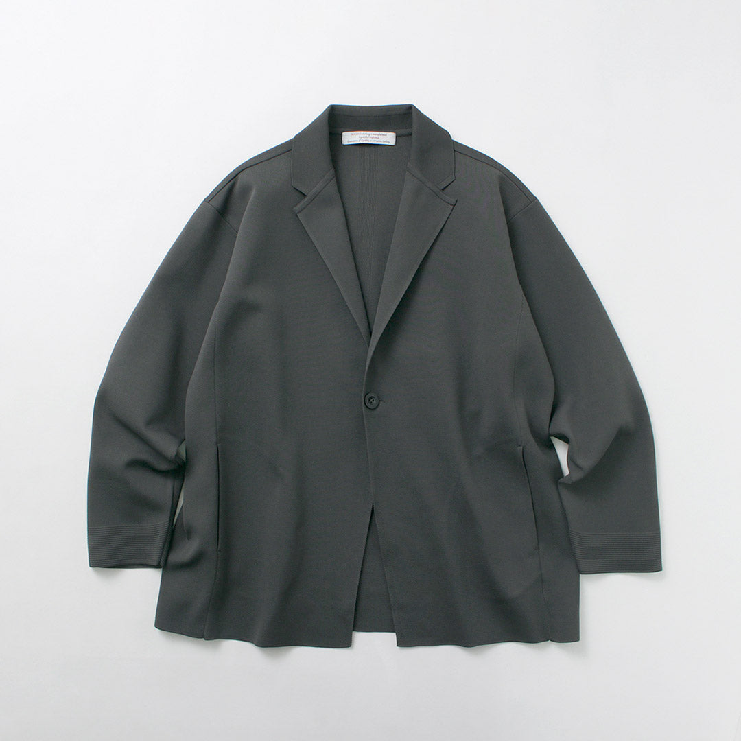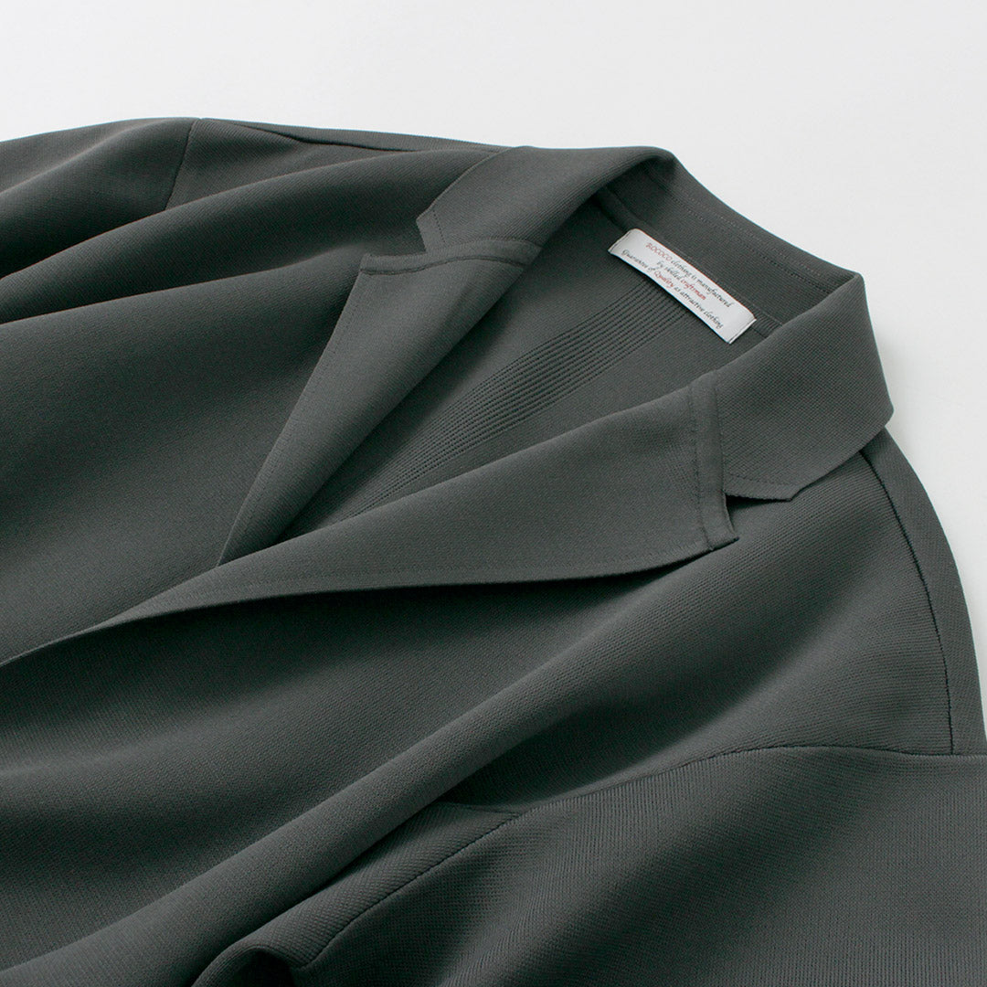 This tailored jacket is made from “Milan rib”, a slightly thick and highly elastic fabric.