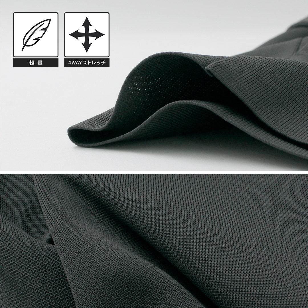The knit fabric made from woven polyester has a classy appearance like wool, and its attractive feature is its beautiful silhouette with a firm texture.