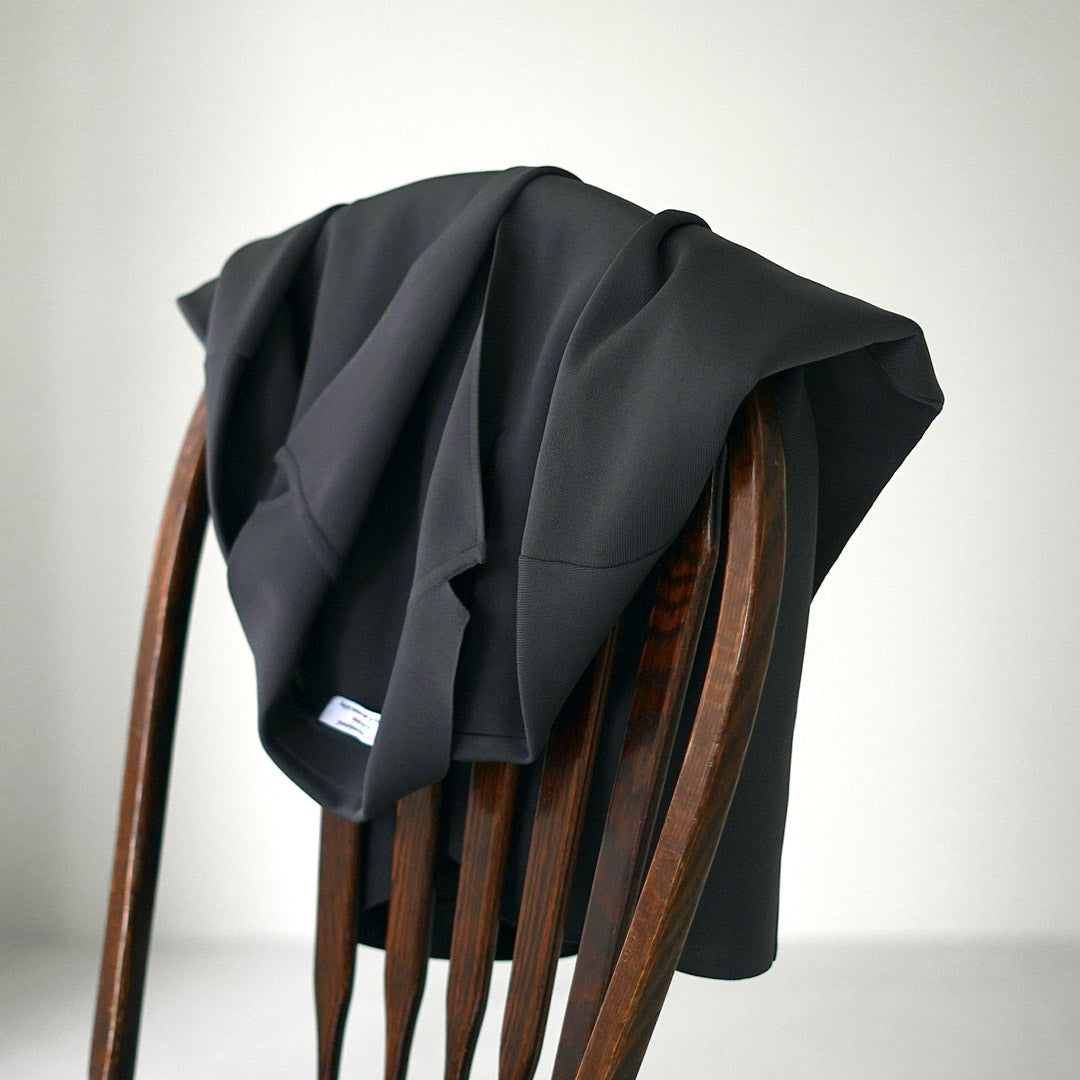 The fabric's slight stiffness ensures it doesn't sag, offering a silhouette that's impressively relaxed. It feels somewhere between a cardigan and a jacket.