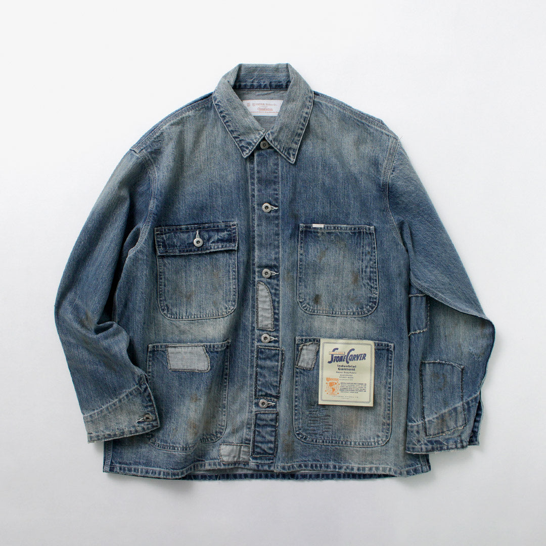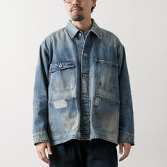 Four large panel pockets are positioned on the front. The use of vintage-inspired remake denim adds a unique character, setting it apart from other denim jackets.