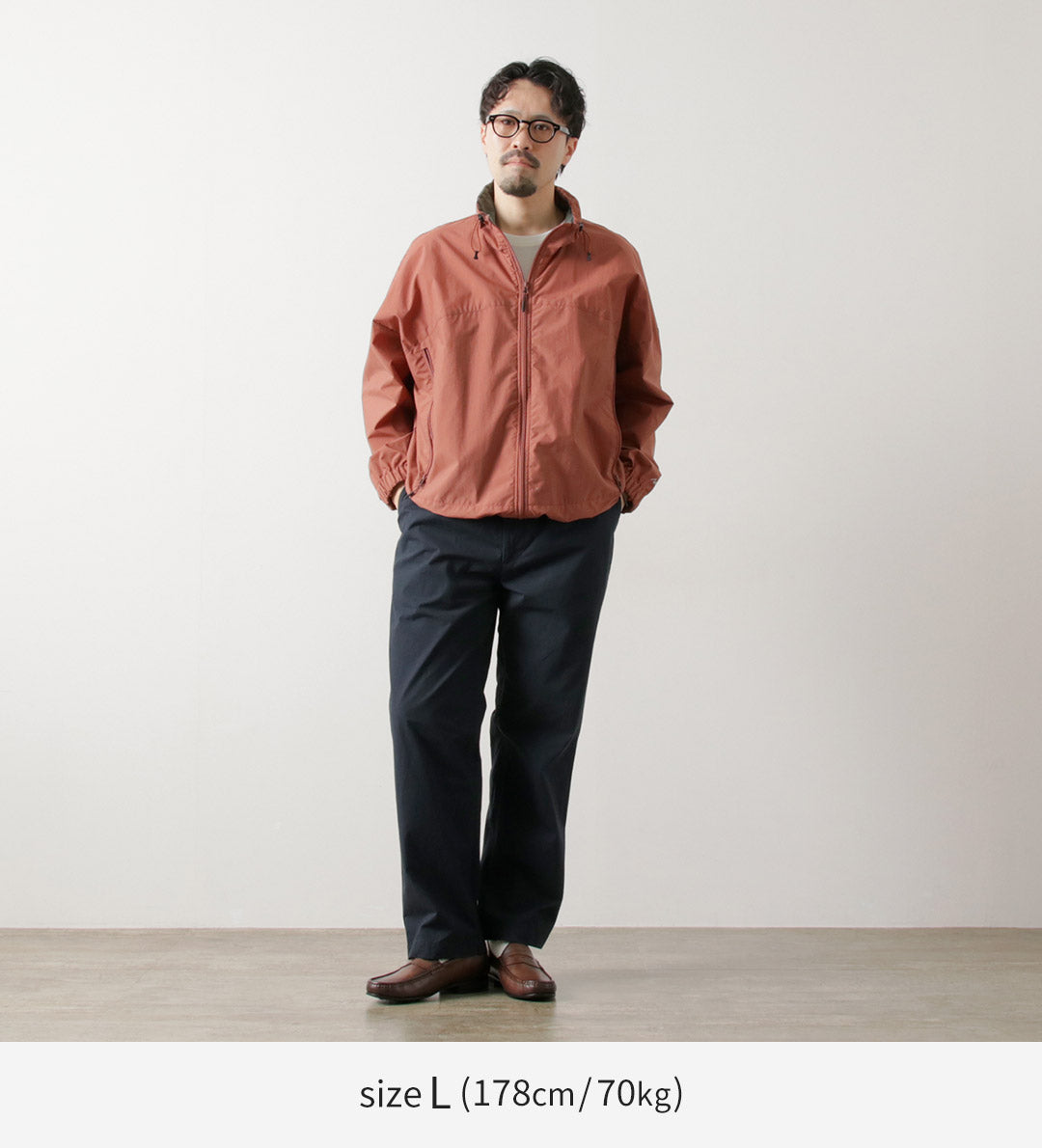 ●Staff (181cm/80kg) Body type: Sturdy Worn: Size L The tapered silhouette offers a clean look with a relaxed fit. The waist is elasticated with a drawcord for adjustable comfort, suitable for a wide range of body types. |