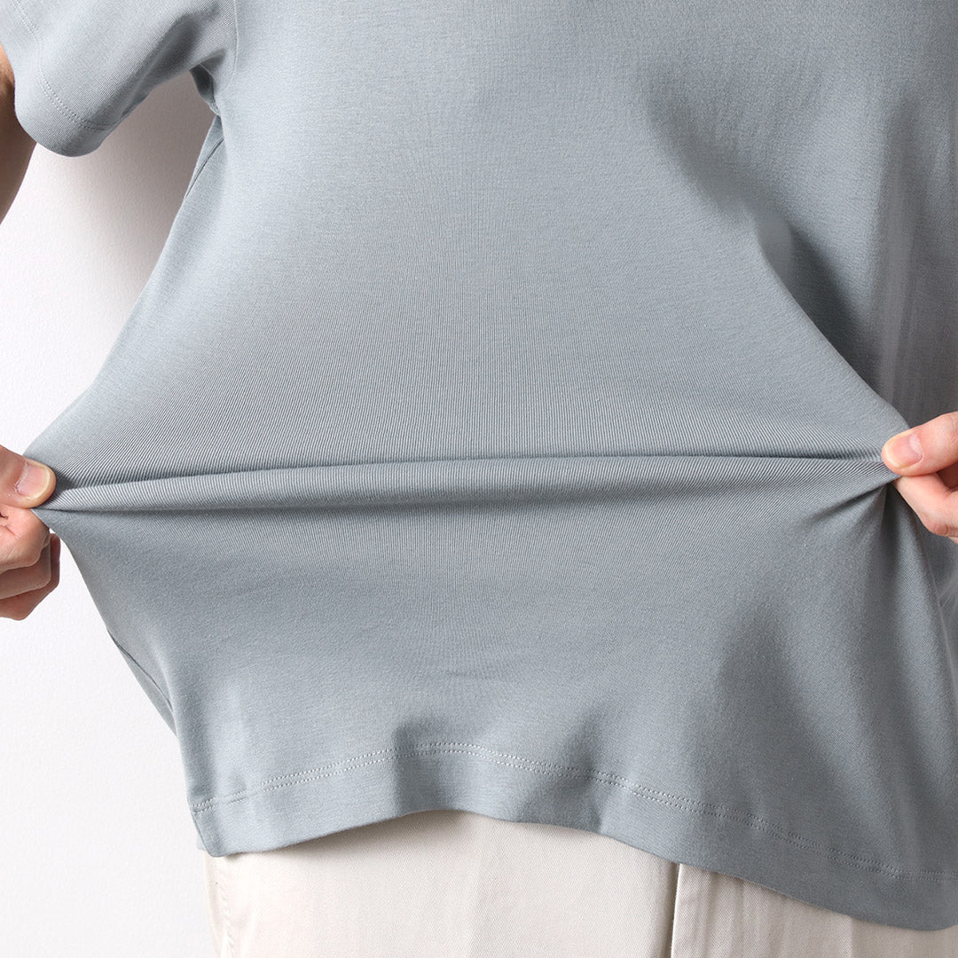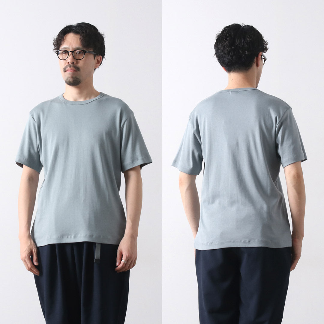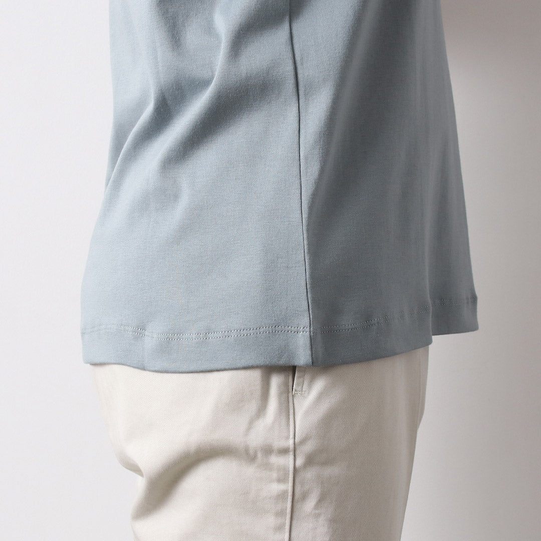 Milling (elastic or ribbed knitting), which has the advantage of elasticity and smoothness, is generally used for the neck and cuffs, but this T-shirt is luxuriously applied to the body as well. The slim fit of this T-shirt allows it to conform to the curves of your body, giving you the best "soft and resilient" feel directly on your skin. The material used is high-quality Supima cotton, which is one rank higher than the smoothness of ordinary milled fabric.