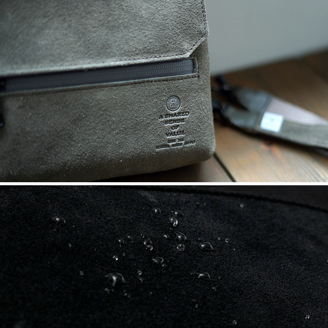 The material used is 2mm thick suede leather made from high-quality raw hides sourced from North America. Chrome tanning gives the leather suppleness and strength, while two rounds of dyeing and water-repellent processing enhance its waterproofing and durability.