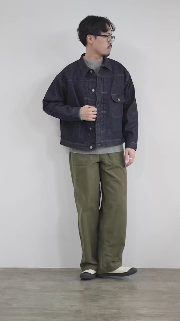 每道工序——从纺纱、染色到编织和缝纫——都经过精心控制,以重现复古牛仔布的质感。这款 13.5 盎司布边牛仔布采用不规则的 7 号经纱和纬纱制成,表面丰富、凹凸不平,富有特色。一次洗涤处理使其从一开始就具有柔软的手感,同时织物保持坚固的手感,形成美丽的铜绿,并随着时间的推移而独特地褪色。