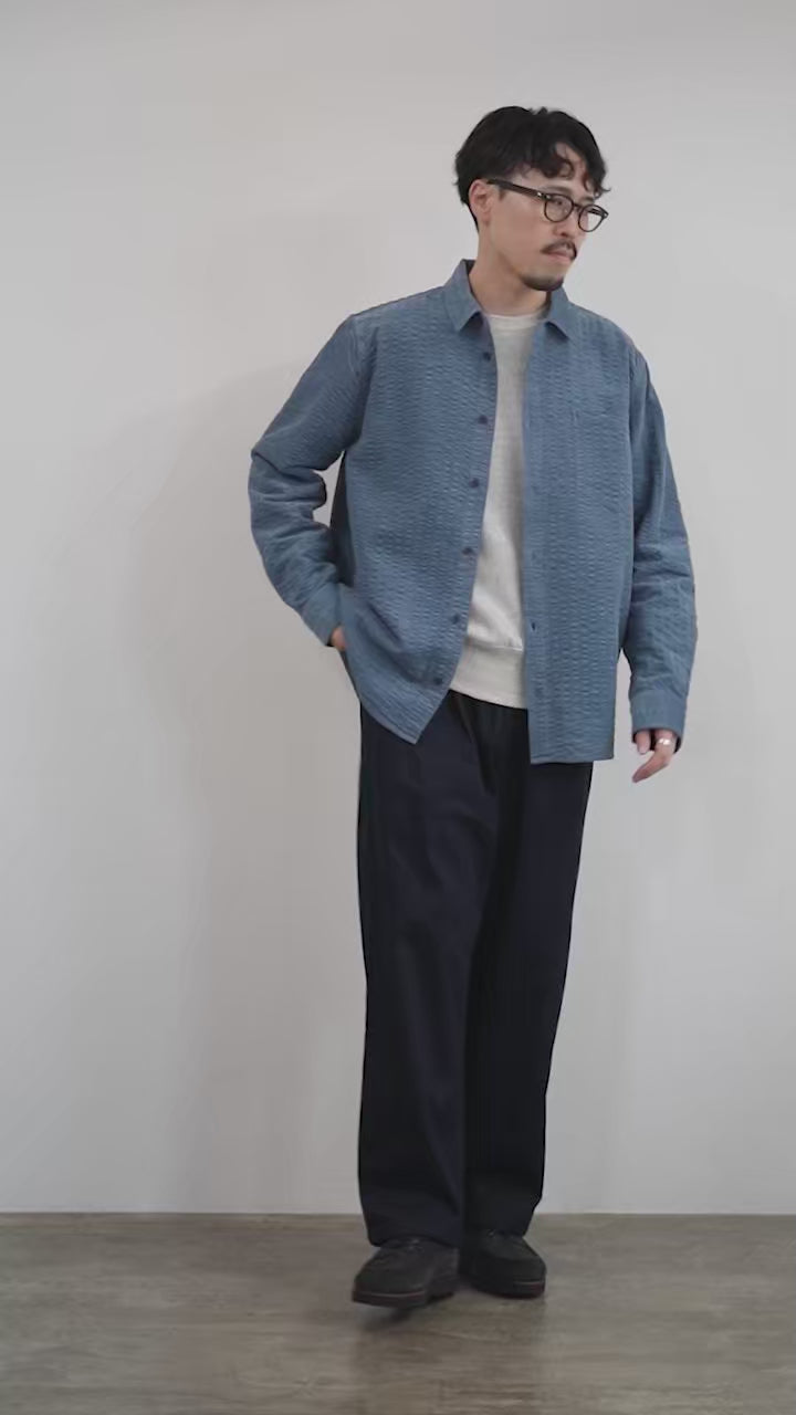 泡泡纱标志性的褶皱纹理带来轻盈、透气的感觉和出色的透气性。与细纹灯芯绒的柔软温暖相结合,打造出一种触感挺括但舒适保暖的面料——一种具有独特触感的多功能材料。