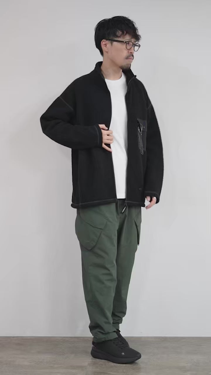 ●工作人員(177cm / 67kg) 體型:常規 穿著尺碼: XL 穿著與模特照片相似。雖然肩膀寬闊,但身材卻不會顯得過於寬鬆,保持著乾淨的印象。長度完美平衡,既不太長也不太短,因此可以順暢地疊搭在夾克和外套下,不會感覺笨重。非常適合作為將功能與設計融為一體的中間層。 |