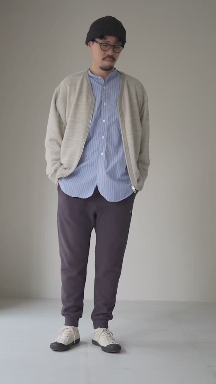 ●工作人員(165cm/52kg) 體型: 苗條 穿著尺碼:S 稍微係緊腰部,讓下擺產生兩個輕微的斷裂,剛好接觸到鞋子。與其他運動褲相比,錐形褲腿使整體看起來更乾淨。 |