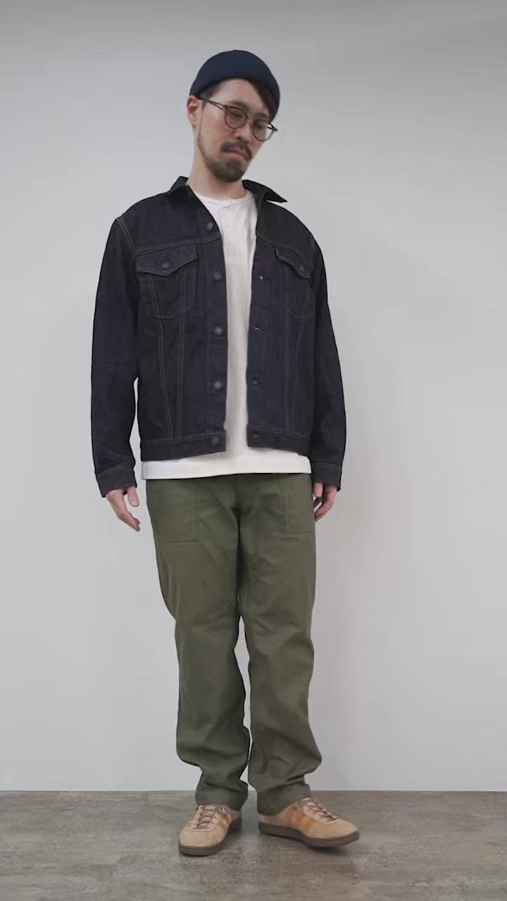 ●Staff (171cm / 61kg) Build: Average Wearing: Size 38 / 40 Tried on size 38 over a T-shirt. The one-wash fabric is soft and comfortable, with shoulder width and length fitting just right. Size 40 allows for layering over a sweatshirt in early autumn. The shorter length keeps the look sharp and avoids any bulkiness. |